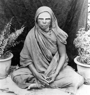 She was tall and majestic, the daughter of a lawyer from Tiruvellore, which is near Madras. Sadhus often came to her house, and even as a child she welcomed them. Once, a wandering monk, inspired by her devotion, taught her how to meditate between the eyebrows. She practised with great enthusiasm and could sit for a long time, lost in total contemplation. When she grew up, her family married her to a man in Madras, but whenever she went to her husband’s house, she would start to develop a severe headache that would not respond to any treatment. When she went back to her father’s house, the headaches would stop. They would only recur when she tried to re-enter the front door of her husband’s house. Her husband was a very understanding man. He sympathised with her plight and allowed her to stay permanently in her father’s house. It was clearly not her destiny to live a normal married life. Soon afterwards she entered a new phase of her spiritual growth when she found that the headaches occurred whenever she was not absorbed in meditation. Initially, it was only married life that gave her a headache. Now, everything in the world that was not connected with meditation brought on the same physical pain. The pain of normal consciousness and the desire for a contemplative life drove her to the point where she meditated all day.