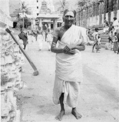 Sundarammal was the wife of a well-to-do official at Madras. She had some hysterical attacks long ago and visited Ramanasramam. The fits ceased but she continued childless. She repeated her visits to the Asramam to get over her sorrows and troubles. In 1928, she resolved to alter her mode of life, and to become a sanyansini. She questioned Maharshi if there was any bar to her assumption of sanyasa and to her wearing the kashaya cloth, which is its badge. Acting on his answer, she put on a kashaya cloth and took the vow of silence. She went up the Hill one evening and all alone stayed on the verandah of the Virupakshi Cave. She was dissuaded from being so wild in her choice of her residence. She then removed to the Satguru Swami Cave. She gave up all her former comforts … . Instead, her daily food became a couple of plantain fruits and a cup of milk. She refused to attend to her hair which consequently grew matted and hung loose, and she spent her time in meditation – during the day at the Asramam in Maharshi’s presence and at night in her cave or room. For over three years she led a rigorous life of penance and is later spent her time in pilgrimages at sacred places like Tirukkazhukkunram, Pazhani, Kuttalam, etc. Later she shaved [her head] and took food given to her by all persons, regardless of caste.